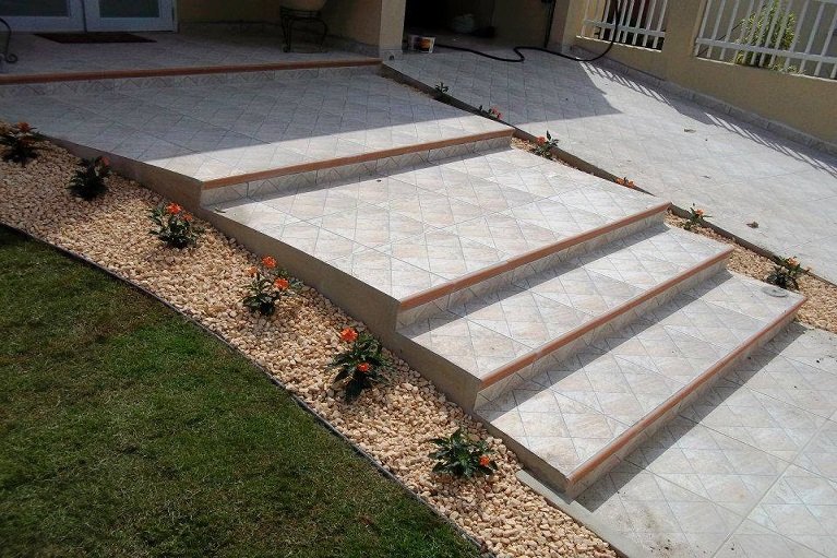 El trabajo abarcó la construcción de los nuevos escalones y rampa de acceso, garantizando comodidad y seguridad para los residentes. Se emplearon materiales resistentes y antideslizantes que se integran de forma natural con el entorno y realzan el diseño general de la entrada.